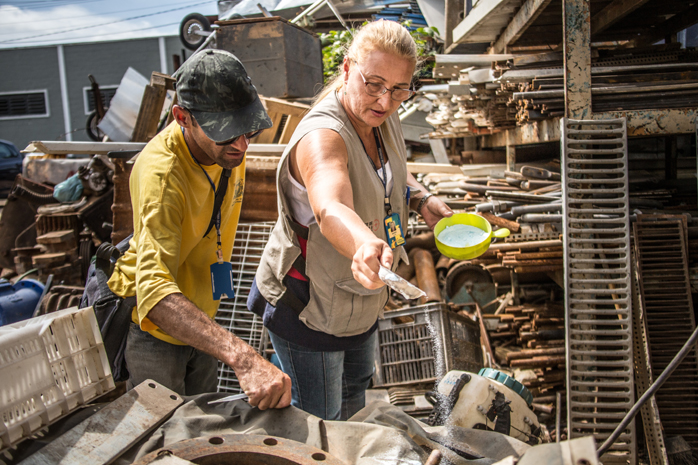 Quando encontram algum foco do mosquito transmissor, os agentes recolhem amostras para fazer a Avaliação de Densidade Larvária (ADL). Em casos específicos, também entregam aos moradores telas de proteção para cobrirem as caixas d’aguas, atendem denúncias de focos de dengue, e realizam a remoção de entulhos e mutirões como o “Cata Treco”.