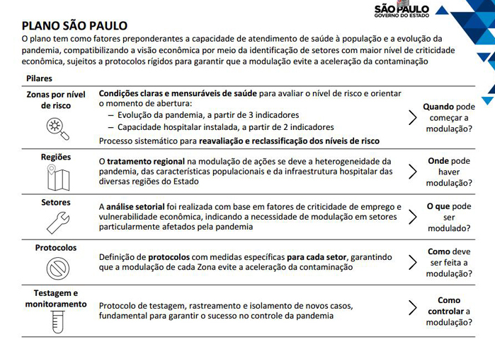 Segundo o governador, João Dória, a classificação para a capital é Zona 2 – laranja e, Grande São Paulo, Zona 1 Vermelha. Veja abaixo, no mapa. Disse ainda, que a partir da Zona 2 laranja, as medidas adotadas serão de decisão dos prefeitos, conforme orientação desta retomada.
